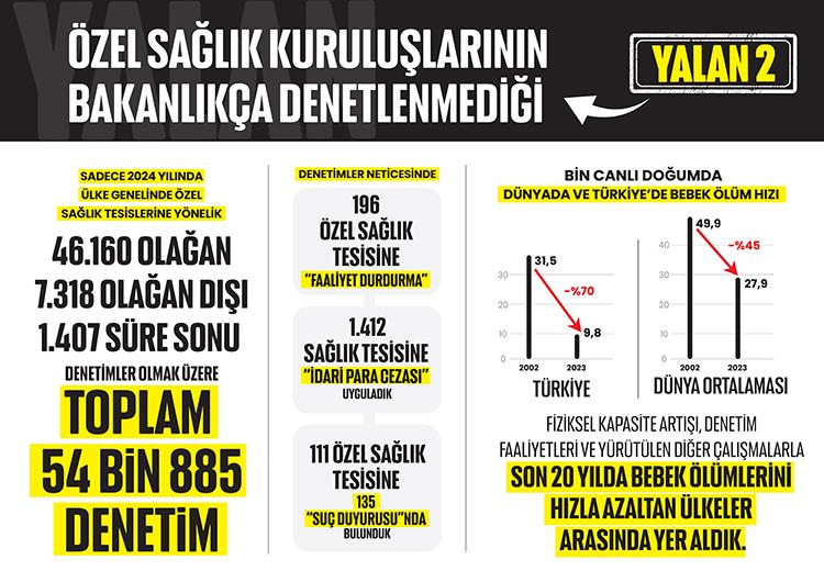 2009’dan bu yana 1 yaşına kadar gerçekleşen tüm bebek ölümlerini ve nedenlerini tespit etmek, gerekli tedbirleri almak ve her bir bebek ölümünü ayrı ayrı incelemek üzere İl İnceleme Kurulları oluşturulduğunu anımsatan Memişoğlu, özel sağlık kuruluşlarının denetimlerinin de uzman ekiplerce olağan, olağanüstü ve süre sonu şeklinde 3 farklı türde gerçekleştirildiğini, her yıl en az bir kez tüm özel sağlık kuruluşlarının denetlendiğini anlattı.