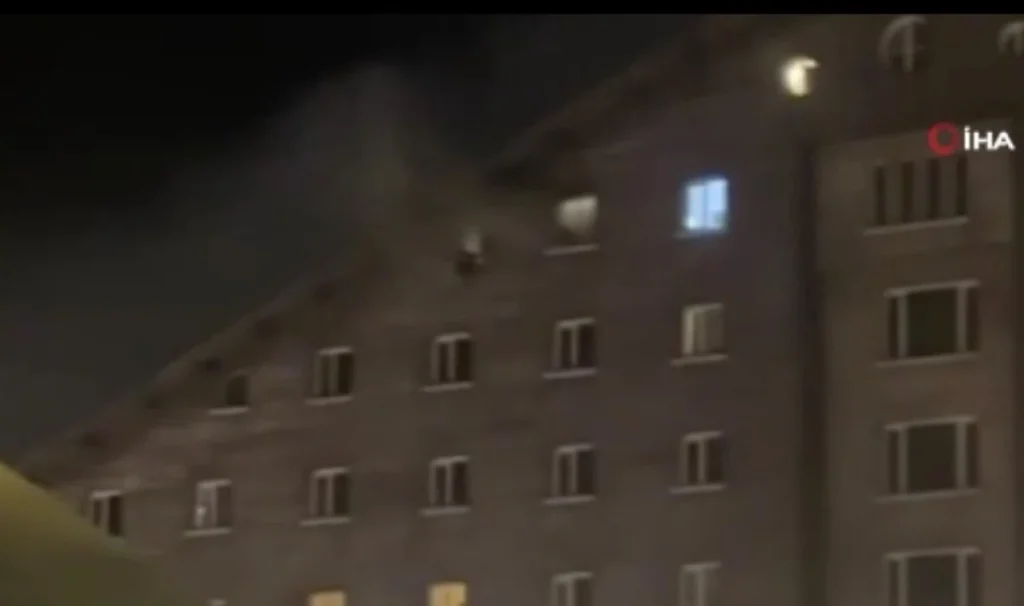 Çarşafla zemine ulaşılamayacak kadar yukarı katlardaki tatilcilerin pencerelerde panikle çare aradığı anlar da kameraya yansıdı.