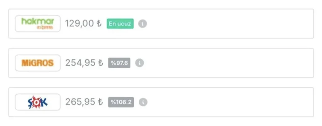 Bir zincir markette X markalı temizlik ürününü fiyatı 129 lira iken, aynı semtte hizmet veren bir başka zincir markette aynı ürünün fiyatının 265 lira olduğu görüldü.