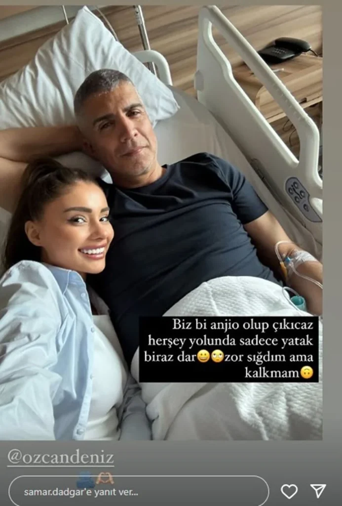 Özcan Deniz bugün anjiyo oldu. Deniz’in eşi Samar Dadgar hastaneden paylaşım yaptı. Dadgar, “Biz bir anjiyo olup çıkacağız. Her şey yolunda, sadece yatak biraz dar, zor sığdım ama kalkmam” dedi.