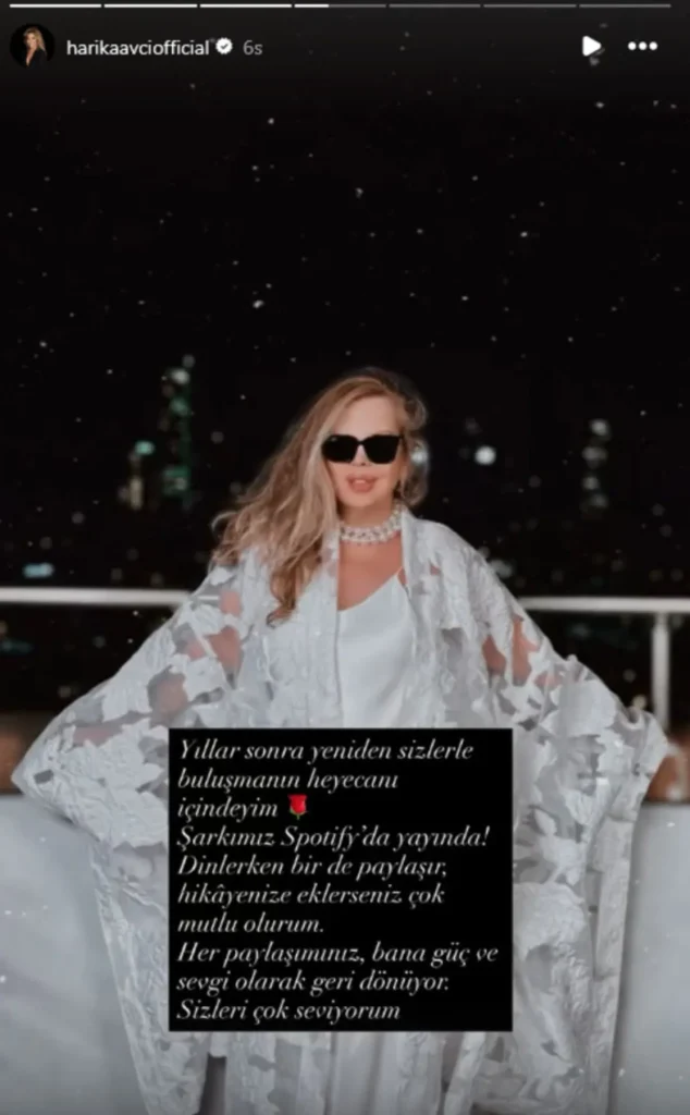 65 yaşındaki Harika Avcı, “Yıllar sonra yeniden sizlerle buluşmanın heyecanı içindeyim. Şarkımız yayında! Her paylaşımınız, bana güç ve sevgi olarak geri dönüyor. Sizleri çok seviyorum.”ifadelerini kullandı.