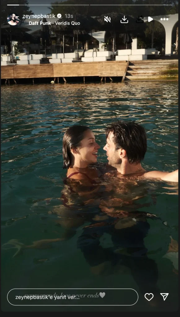 Havuzda verdikleri romantik pozu Instagram hesaplarının hikaye kısmında paylaşan ünlü çift, adeta düşman çatlattı. İkilinin pozu, sosyal medya kullanıcıları tarafından yoğun ilgi gördü.