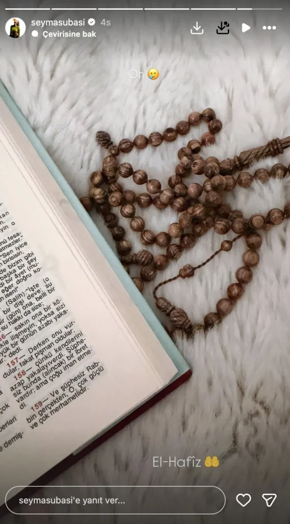 Ünlü fenomen, bu paylaşımın ardından ise Kur’an-ı Kerim paylaşarak dikkat çekti.